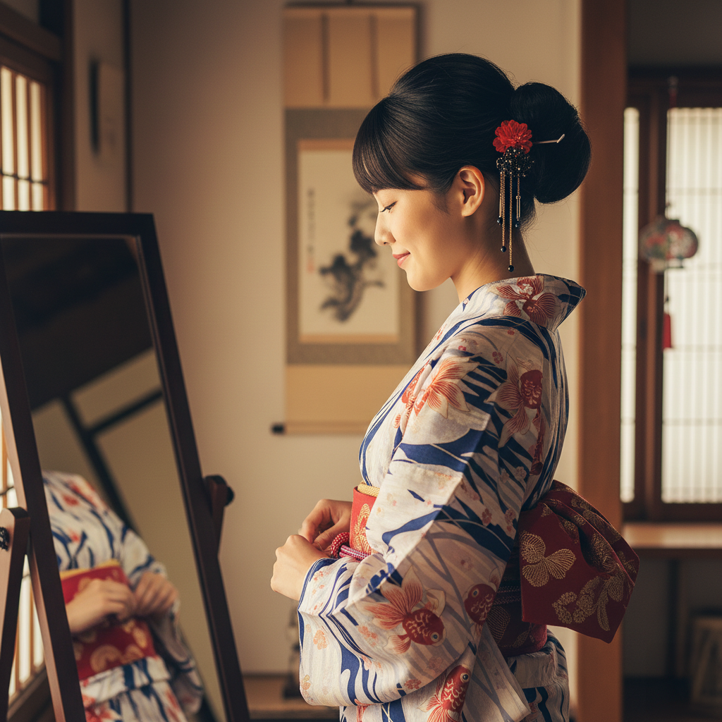 帯を結ぶ:帯をしっかりと結ぶことで、浴衣のシルエットがきれいに見えます。簡単な結び方から始め、慣れてきたらバリエーションを増やしてみましょう。